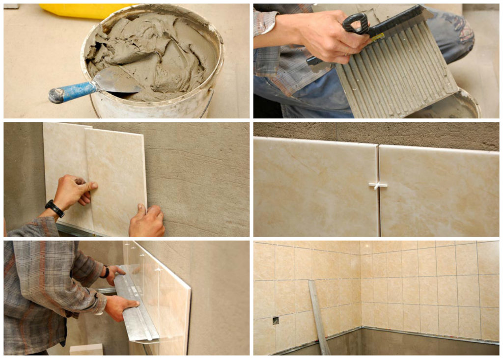 Сначала необходимо демонтировать старое покрытие. Сегодня редко встречаются помещения с черновыми основаниями без изъянов. Значит, этап выравнивания является обязательным перед монтажом плитки. При сильных искривлениях следует оштукатурить стены по всей площади, для чего применяют большой шпатель и специальный инструмент для разравнивания — правило. Если изъяны незначительные, их заполняют раствором локально. На полу в большинстве случаев делают стяжку.