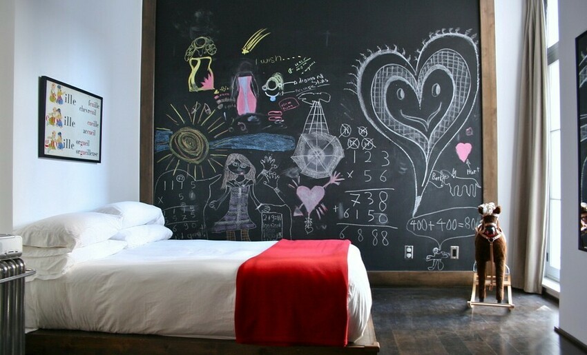 Самым популярным местом использования грифельной краски в интерьере является детская комната