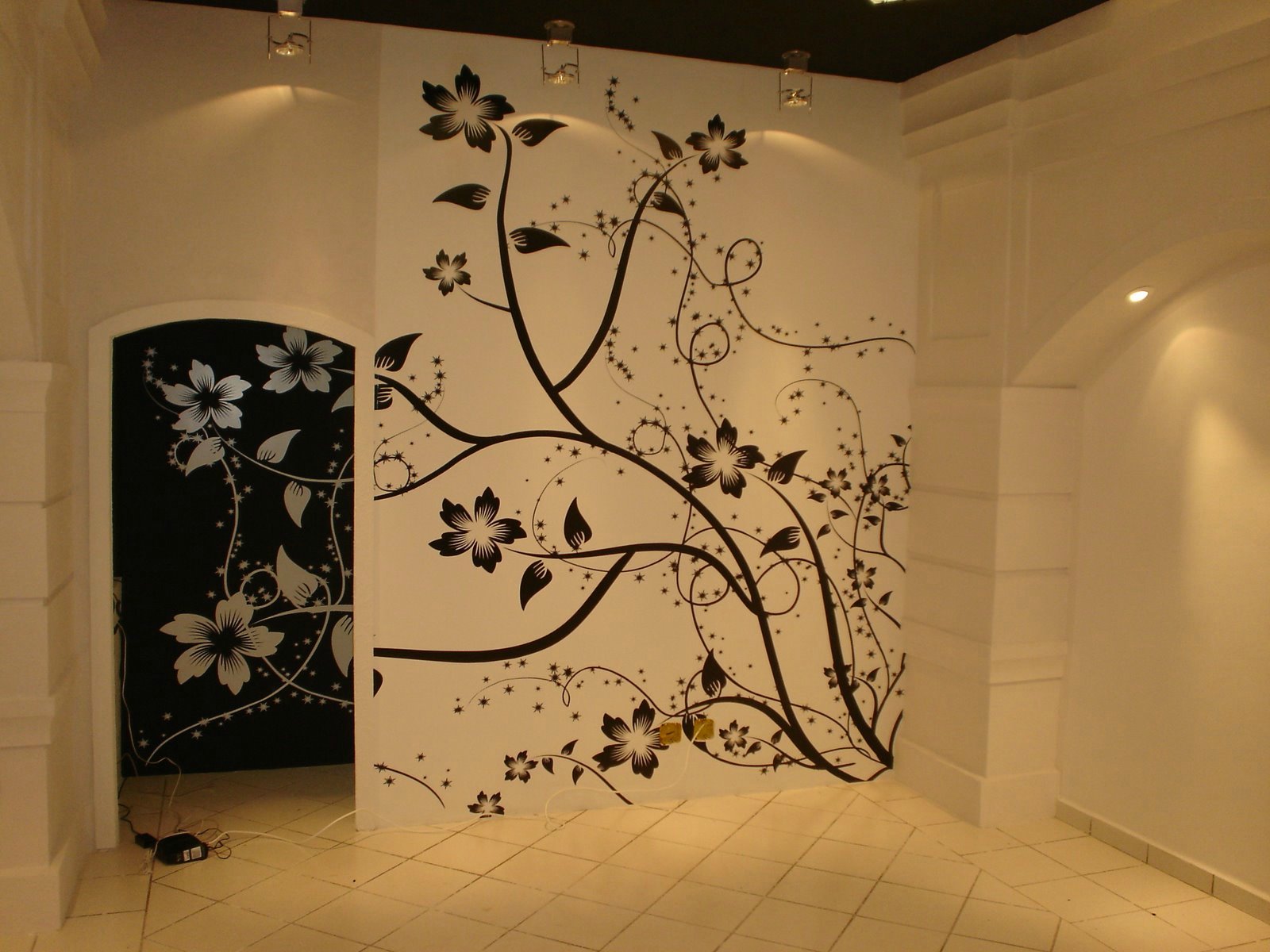 Еще один вид интересного оформления интерьера – это использование трафаретных красок. Даже при небольшом количестве вещества можно создать оригинальную картину.