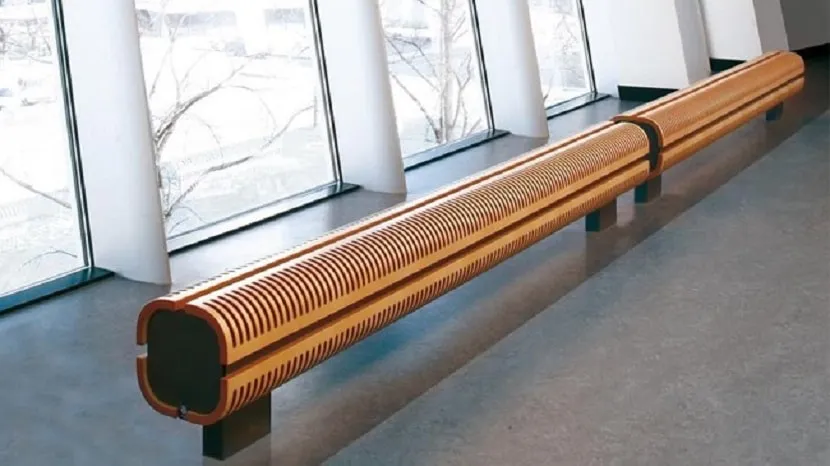 - Конвекторы. Монтируются внутри пола, циркуляция воздуха осуществляется через специальные решётки. Элементы подключаются к центральной системе отопления или имеют индивидуальный источник питания (например, электричество).