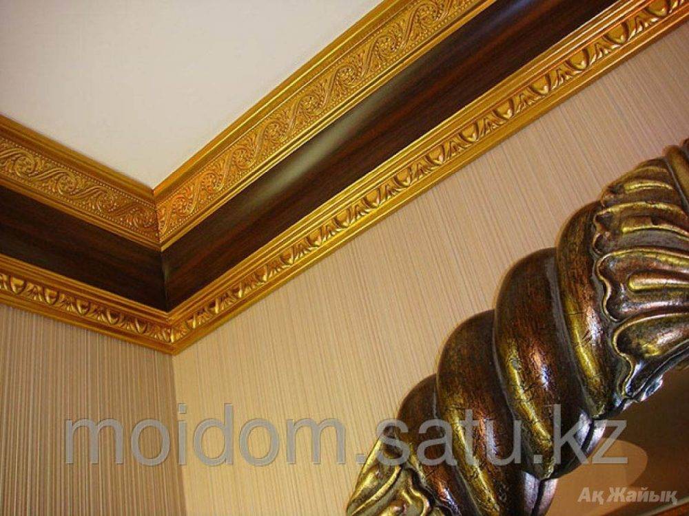 | Из полиуретана | Внешним видом напоминает гипсовую лепнину. Можно украсить жилище за приемлемую цену. Смотрится уникально. В состоянии скрыть мелкие недостатки и трещины на стыках. |
