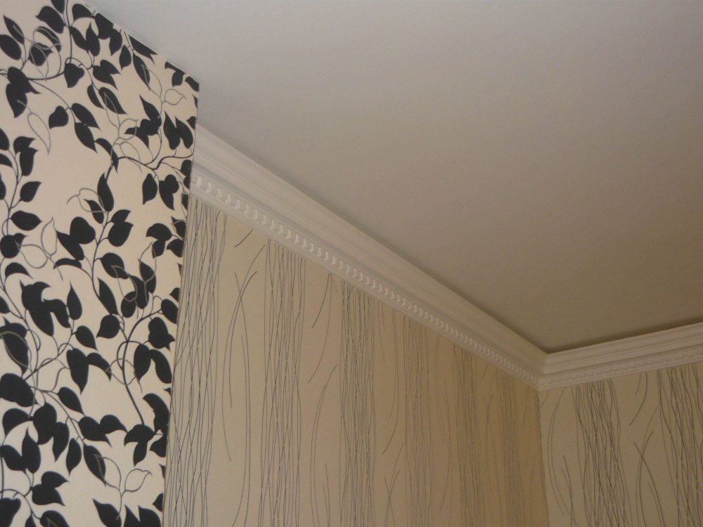 Фотогалерея: различные виды потолочного плинтуса в интерьере (16 фото)