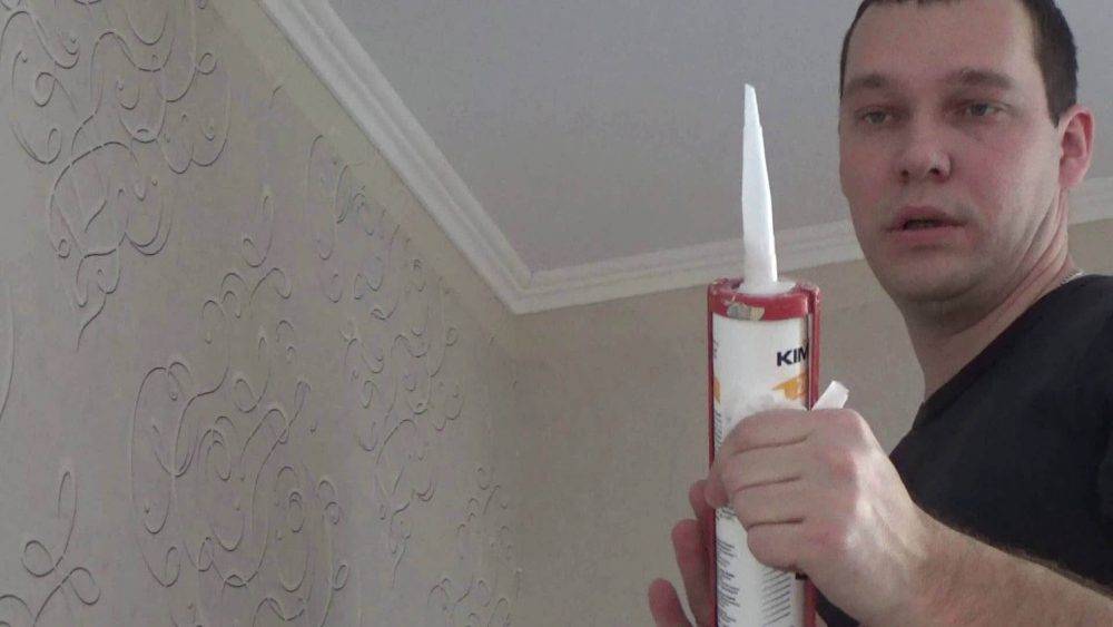 С тяжёлыми плинтусами вряд ли удастся справиться в одиночку, ведь карнизы фиксируются на потолке не клеем, а специальными крепежами, кому-то придётся придерживать багеты в нужном положении, до самого окончания работ.