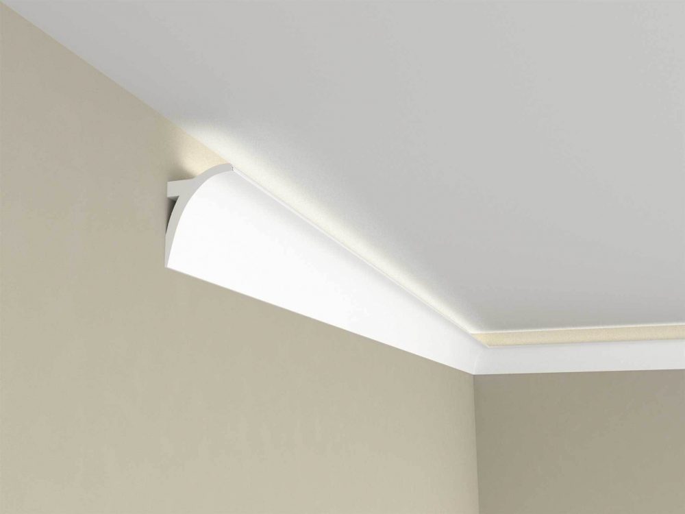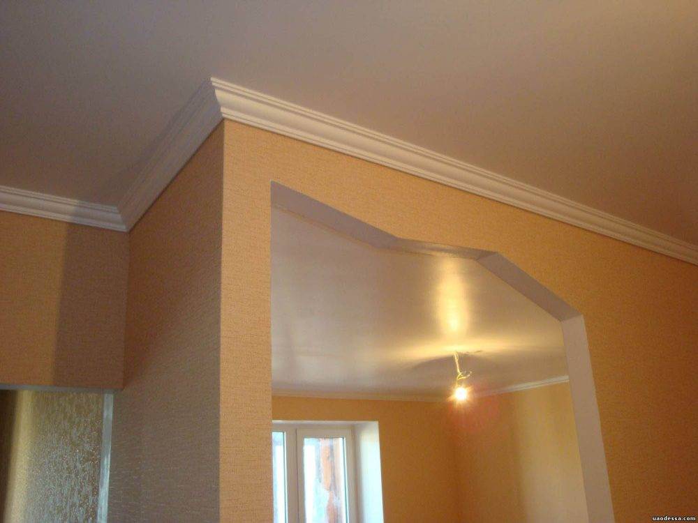 - В небольших помещениях с высотой потолков до 2,5 м стоит отдать предпочтение узким галтелям (20–50 мм). Они делают помещение визуально более высоким.