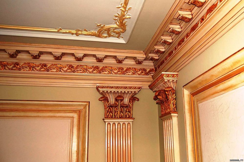 - С лепниной, резные или со сложными рельефами (обычно встречаются среди гипсовых, деревянных).