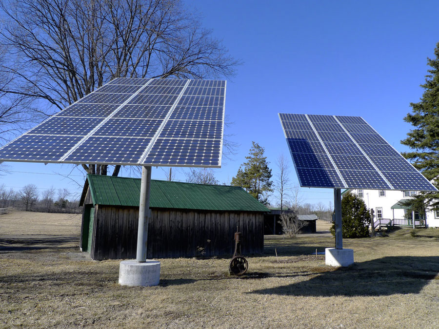 Поворачивающиеся солнечные батареи вынесены от дома на свободное место