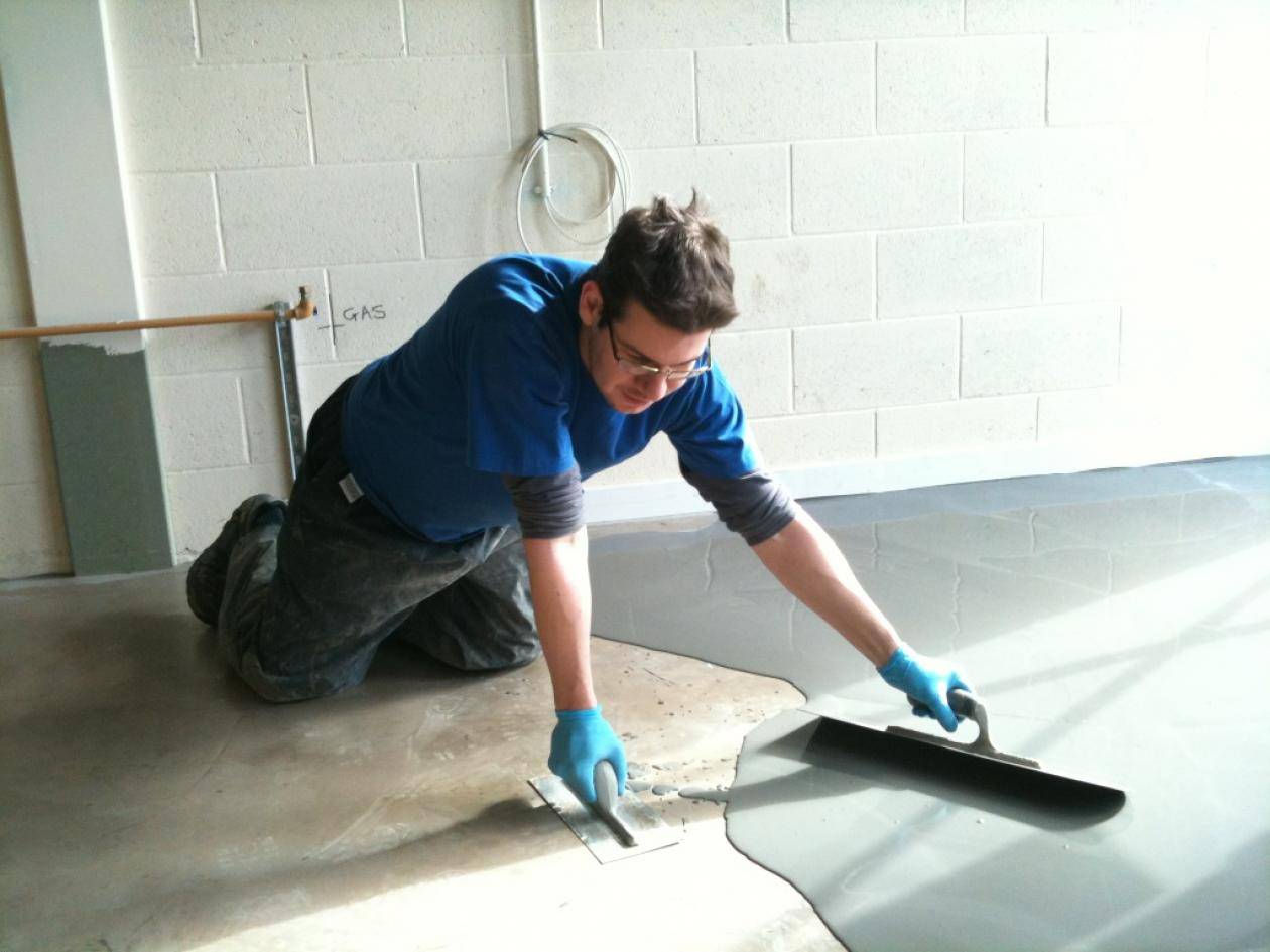 - Самовыравнивающимися растворами, выравниватель полов позволяет за несколько минут изменить старый пол на новый;