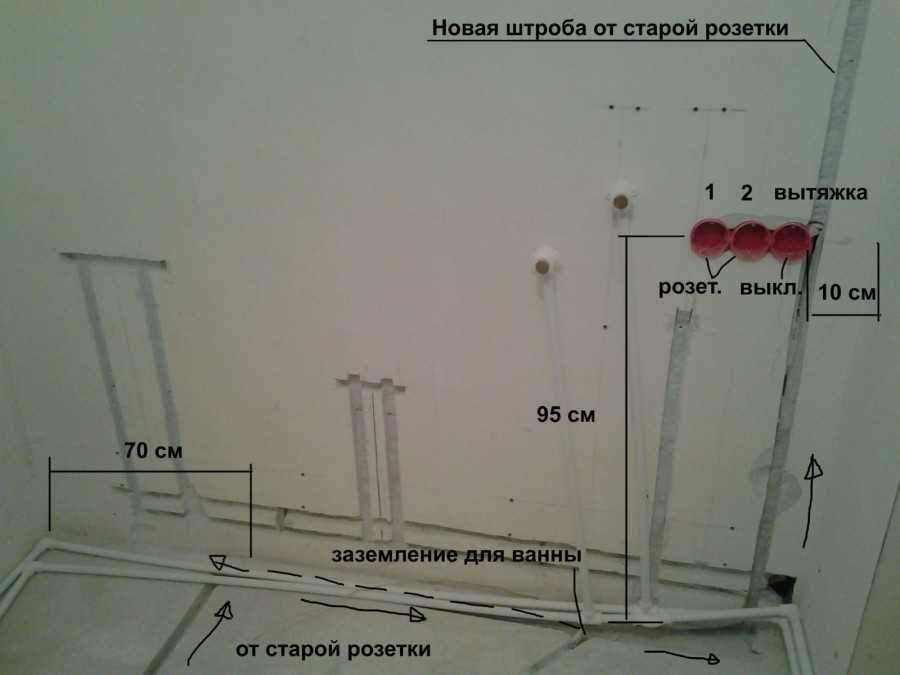 При этом розетка для ванной комнаты, предназначенная для стиральной машины или водонагревателя, монтируется посредством силовых линий. Если дом старый, лучше проложить кабель с отдельным УЗО (выключатель для самой розетки).