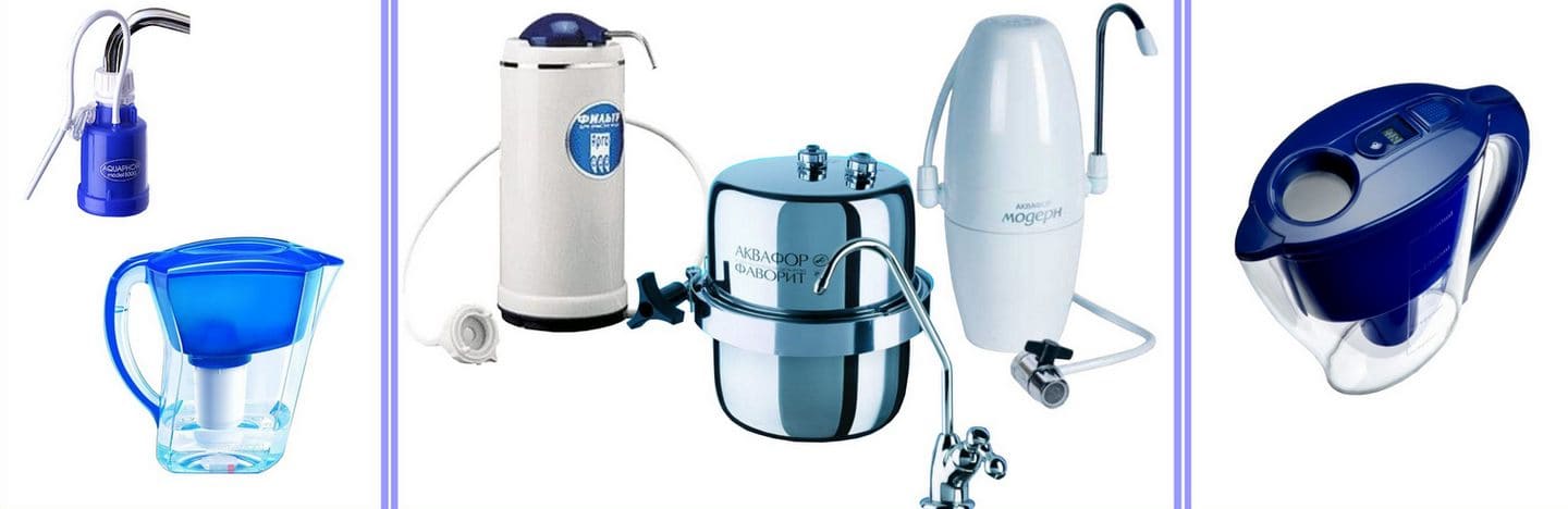 | Фильтры-кувшины | Самый простой способ очистить воду. Часто такие кувшины приобретают на дачу из-за их мобильности, но и дома они могут использоваться тоже. Это действительно кувшин, но внутри у него есть специальный элемент, через который и проходит вода. В процессе прохождения фильтра она очищается от взвесей. Прочитать про выбор фильтров-кувшинов можно тут. |