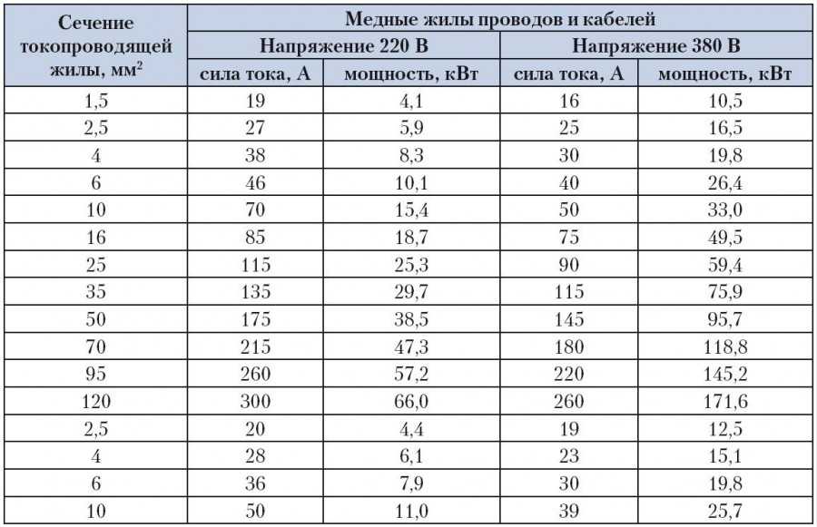 Вне зависимости от марки кабеля отдельно стоит обращать внимание на сечение проводов или кабелей. Оно по факту отвечает за ту токовую нагрузку, которую кабель сможет выдержать