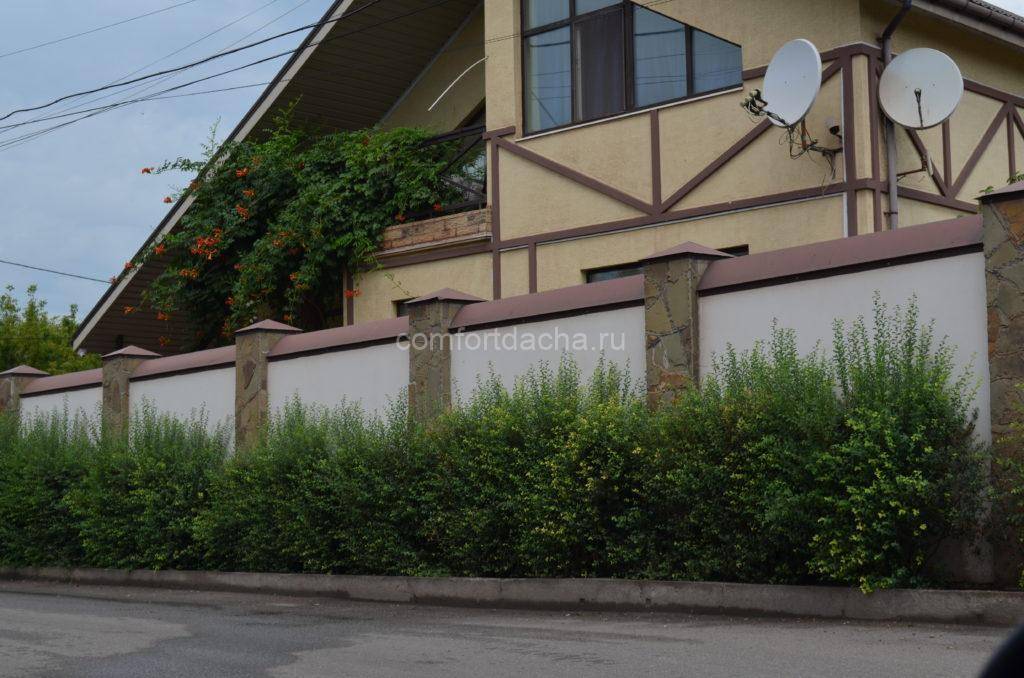 Живая изгородь прекрасно комбинируется с различными материалами: