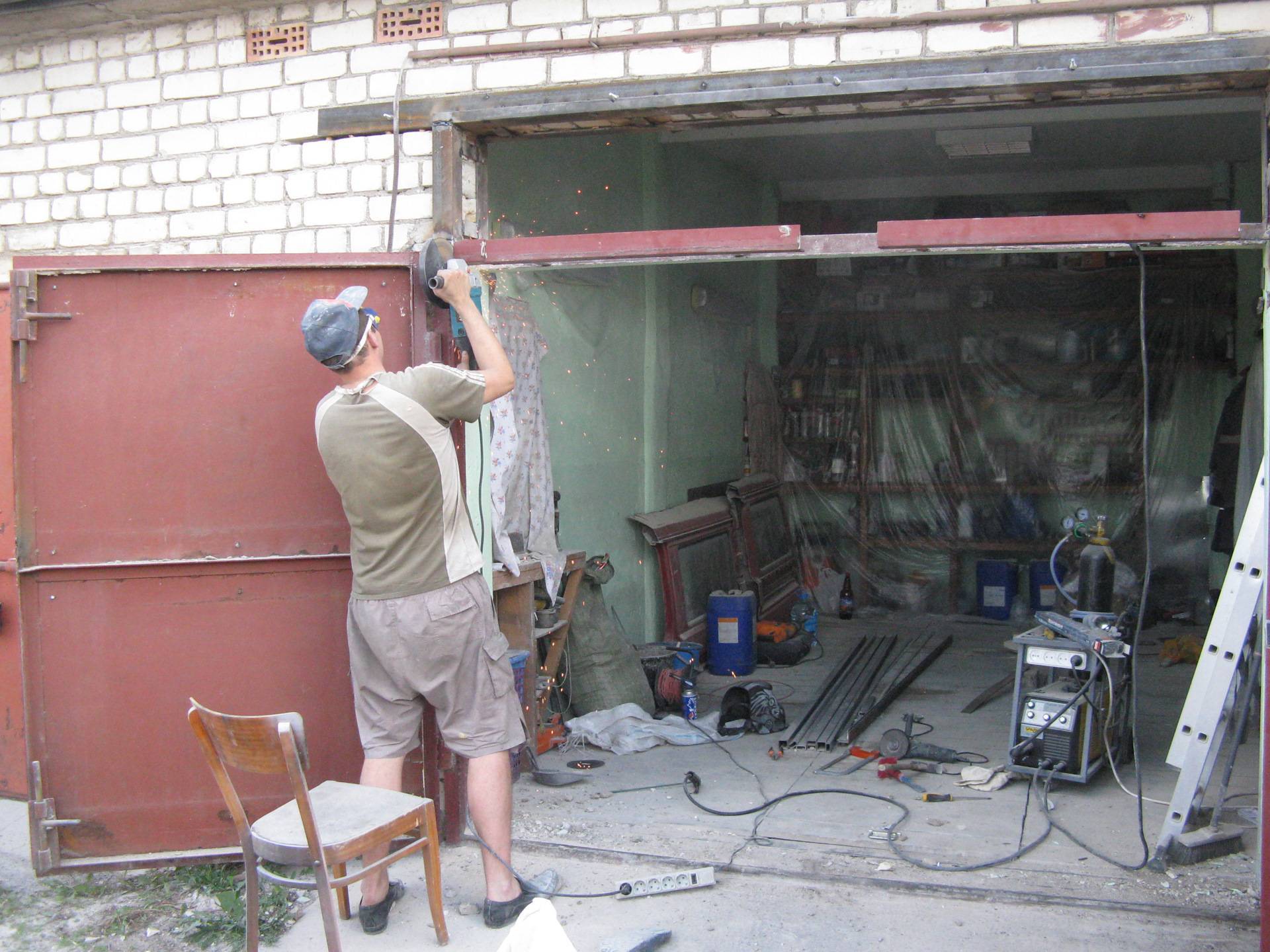 Удаление старой краски с поверхности ворот угловой шлифмашинкой