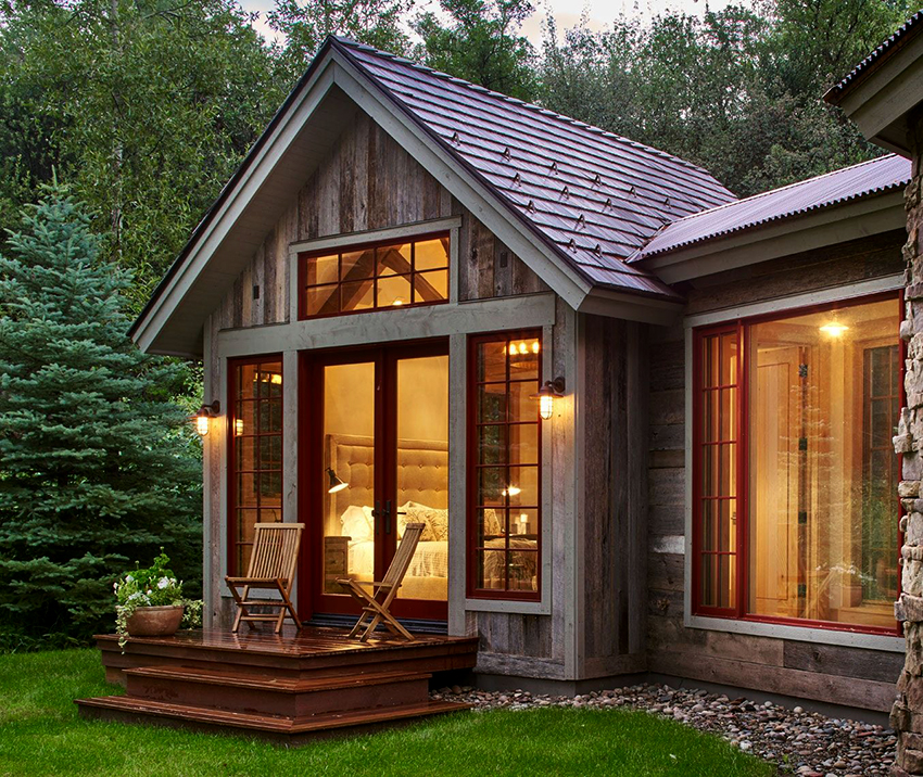 Лучше всего на визуальном уровне легкость и стремление к простору, характерные минимализму, передадут светлые тона. Эффектно смотрится игра контрастов на фасаде. Приоритетными материалами для декоративных работ в этом случае будут штукатурка, вагонка, кирпич.