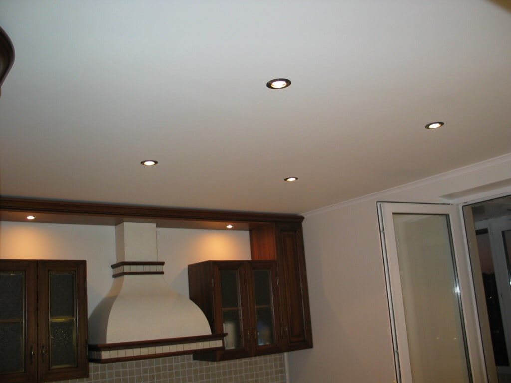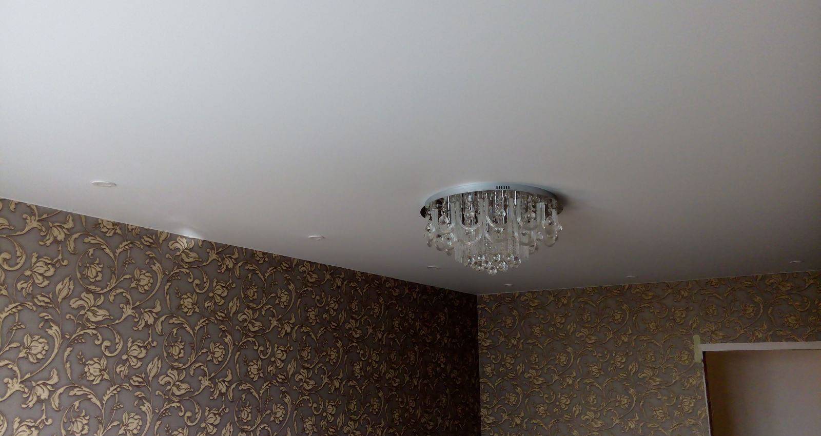 Матовый потолок абсолютно не привлекает внимание, поэтому действует на человека расслабляюще. Данный вид покрытия отличается определенной шероховатостью, поэтому на кухне его не устанавливают