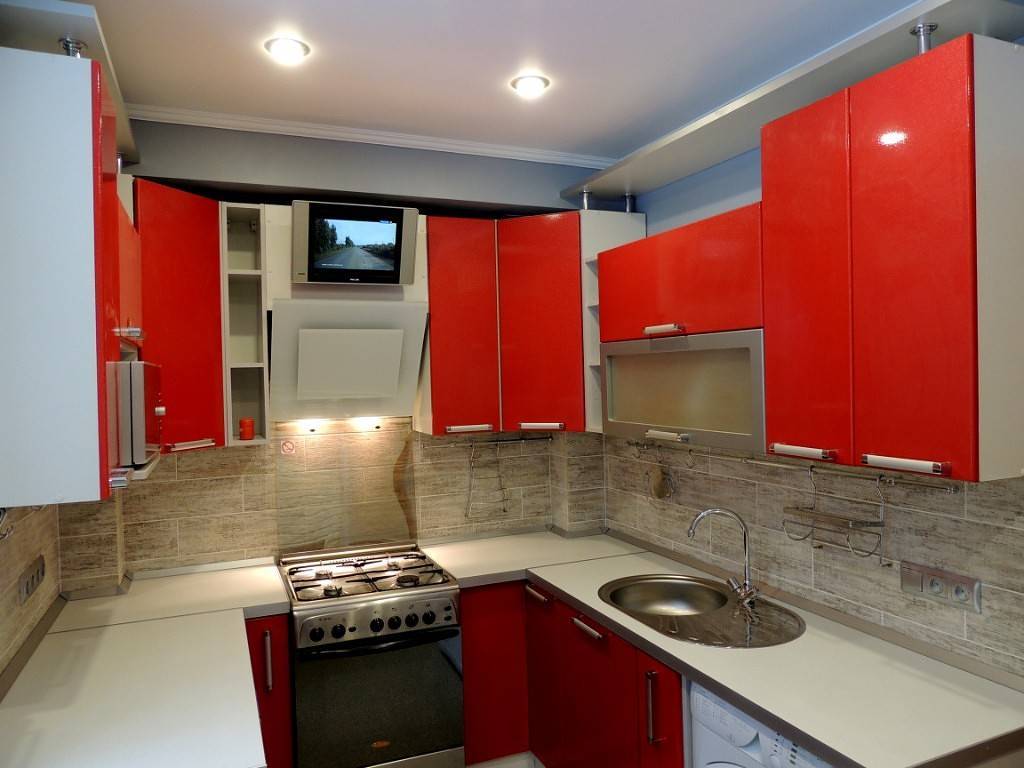 - «съедает» высоту потолка кухни не меньше, чем на 3,2 см;
