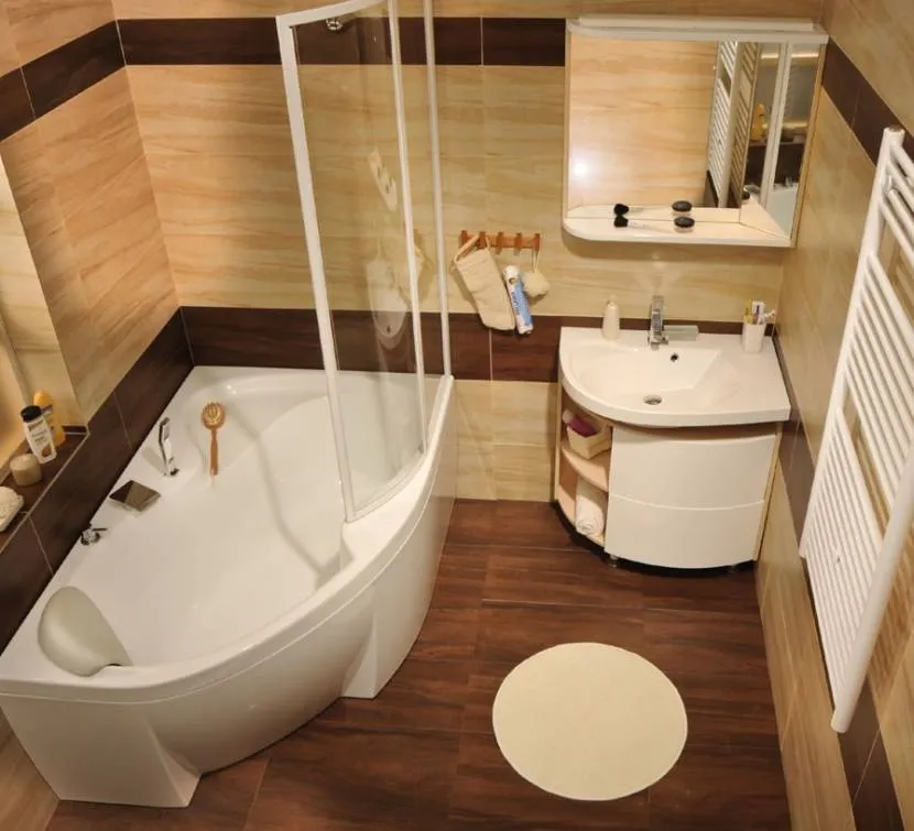 - Планировки ванной комнаты. Если у вас небольшой ванная комната, то предпочтение следует отдавать асимметричным ваннам, которые не занимают много места, оставаясь, при этом, комфортными и вместительными. В этом плане широкий выбор предоставляют производители акриловых ванн.