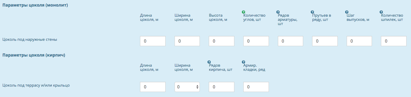 Ширину цоколя нельзя ввести вручную, её необходимо выбрать из списка. Высоты цоколя нет, её заменяет такой параметр как количество рядов кирпича. Данное решение применено для точного подсчета количества кирпичей с учетом шва для всей кладки. Армирование кладки – это достаточно «хитрый» пункт, который имеет очень сложный алгоритм. Единственное что вам необходимо знать, так это то, что вводимое тут значение не должно быть больше значения пункта «Рядов кирпича», иначе результат может быть непредсказуем, а также то, что последний ряд не армируется.