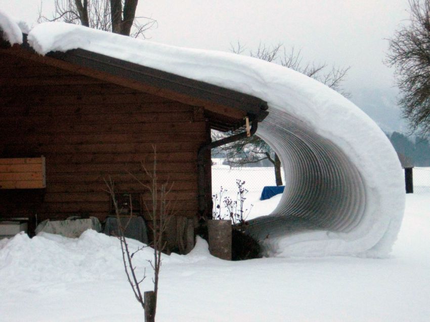 Обычно со скатной крыши в течение суток удаляется до 5 % снежного покрова. Он сдувается ветром, сползает или покрывается настом. Но оставшееся количество отрицательно влияет не только на конструкцию, но и на человека: