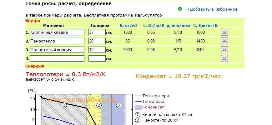 Расчет точки росы