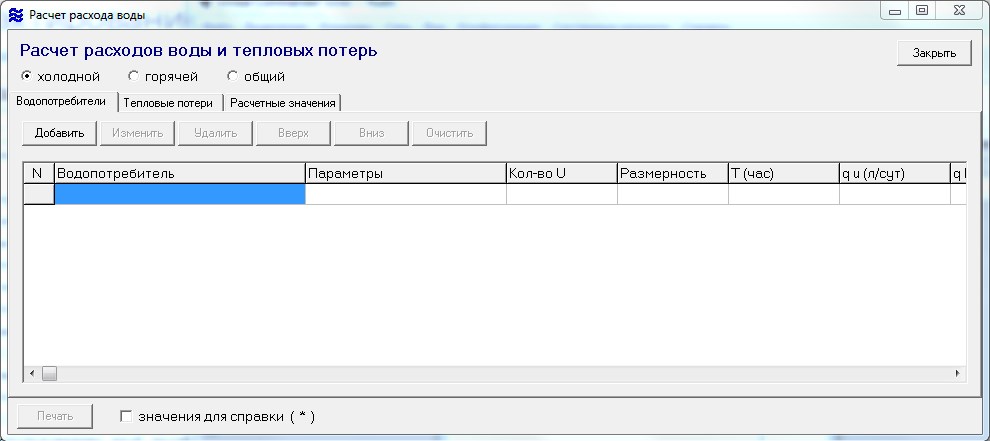 Программа для расчёта водопотребления: WaterCalculations