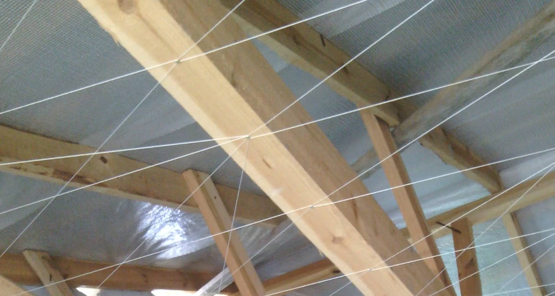 «Обрешетка» из капроновых нитей на потолке