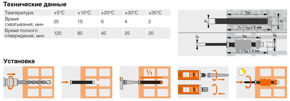 - химические анкеры по ГОСТу можно устанавливать даже под водой;