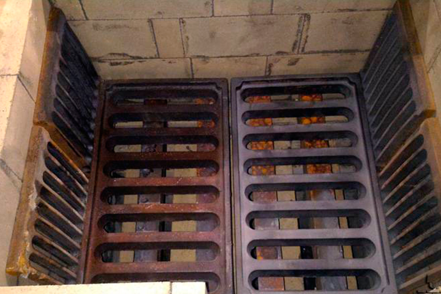 - После возведения стен поддувала поставить дверцу и накрыть решёткой, которая будет дном топки.
