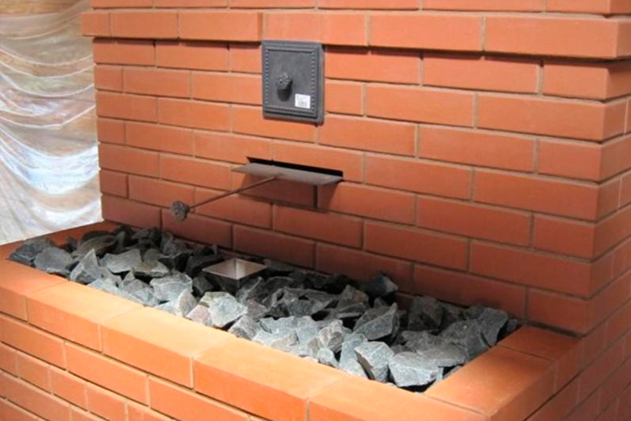 - Каменка, имеющая отдельное отверстие для закладки парного камня и набрызгивания воды.