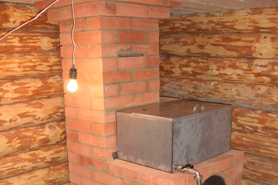 Для стирки, например – в старину в банях издавна стирали белье. Или печку, для которой нужно минимум кирпича, и которая используется только для создания жара и подогрева камней.