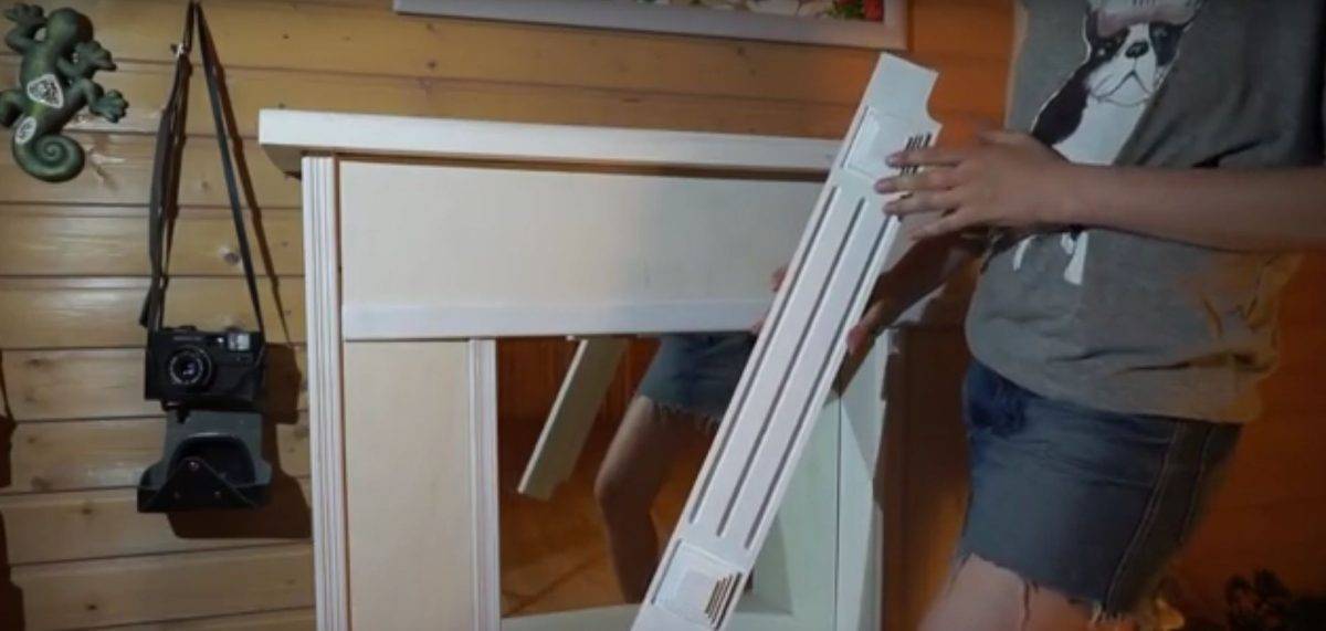 Такой вариант считается самым дешевым. Он позволяет создать шикарный фальш-камин из старой ненужной мебели. Для работы понадобятся: