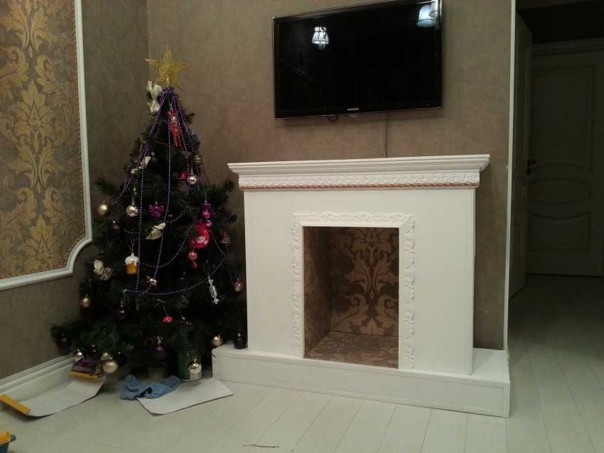 Такой вариант подходит, если мы делаем фальш-камин с деревянной рамой, стенами, или хотя бы ДВП, ДСП.