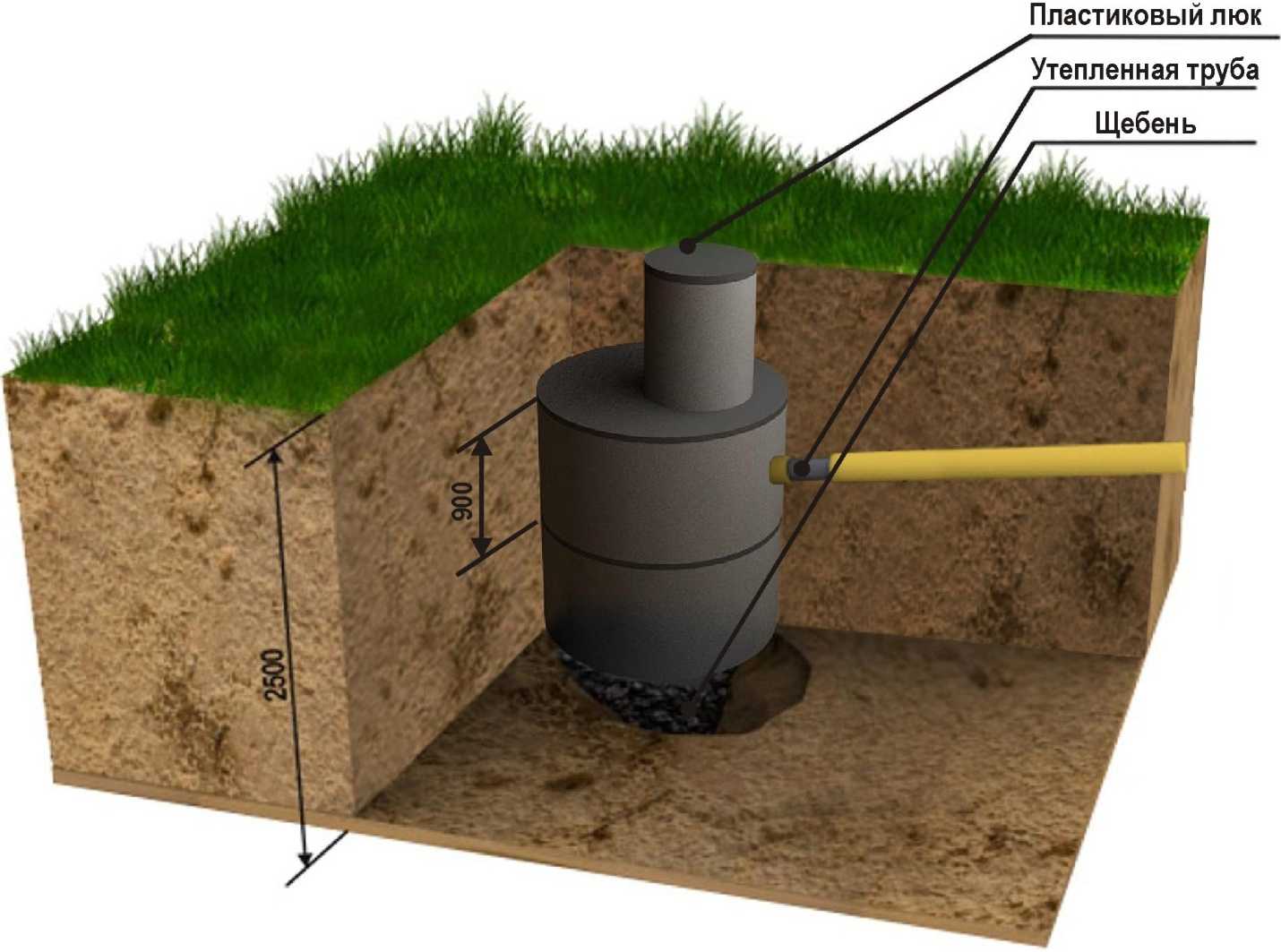 Важно! Ёмкость должна устанавливаться ниже уровня промерзания земли на участке. В противном случае дачная канализация перестанет работать