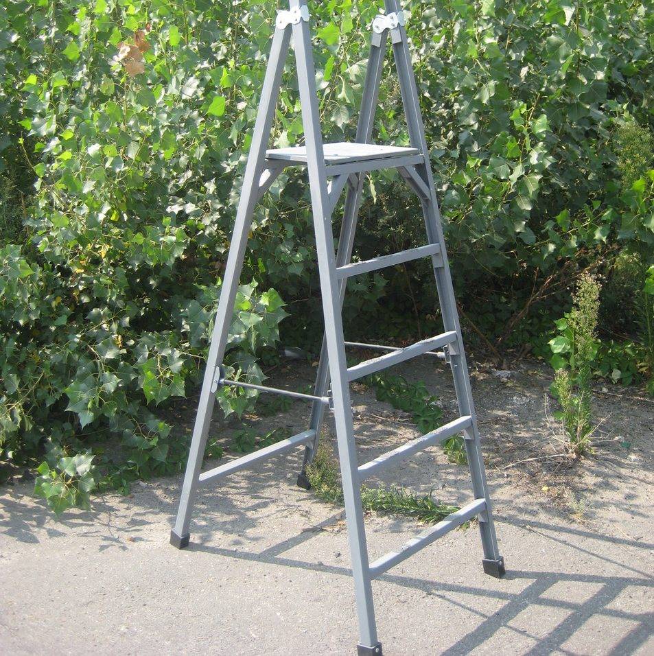 Лестница состоит из двух тетив и восьми ступеней. Особенностью лестницы является шарнирное крепление ступеней, что позволяет ее сдвигать.
