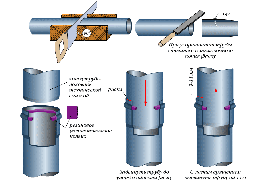 Главное отличие здесь – в герметизации раструбных сочленений. Она выполняется так: