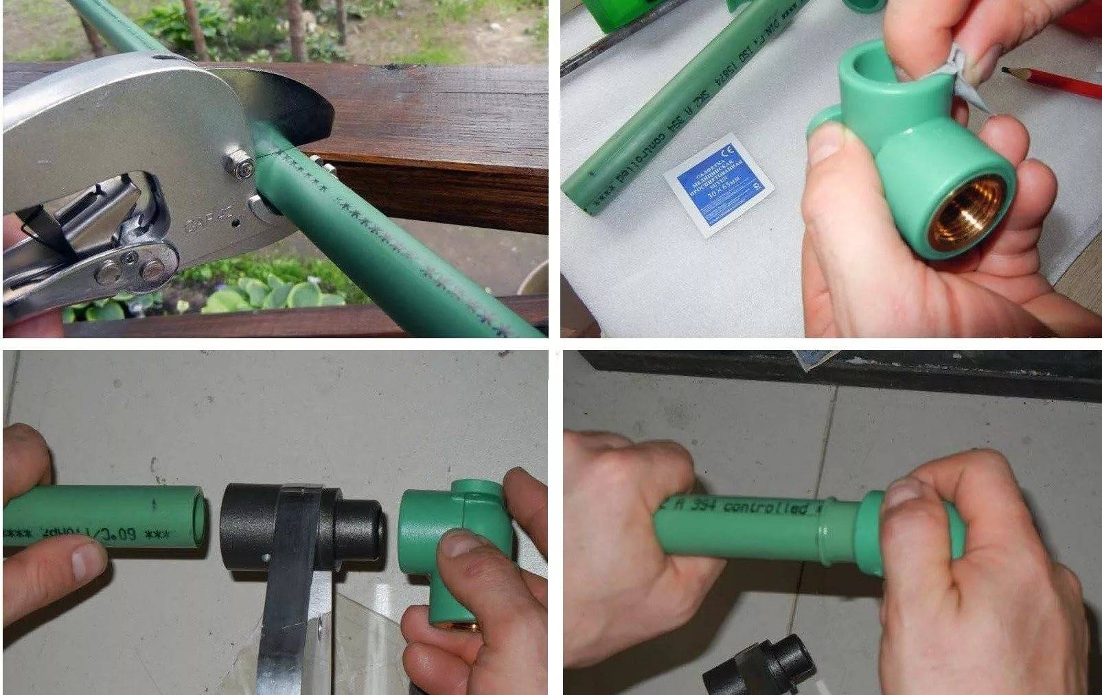 Концы соединяемых труб должны быть ровными. Для этого полипропиленовые трубы нарезают либо труборезом, либо пилой с мелкими зубьями или болгаркой, оставляющими минимум зазубрин