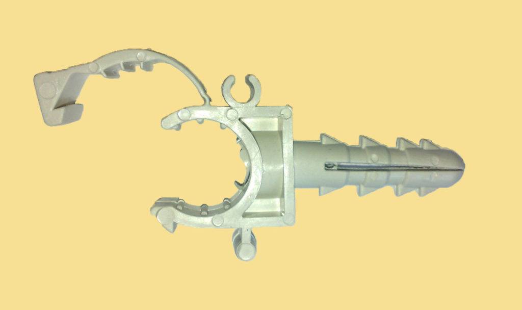 Этот вид крепежа выполняется из пластика и предназначен для монтажа легких полипропиленовых труб, чей диаметр не превышает 50 мм.