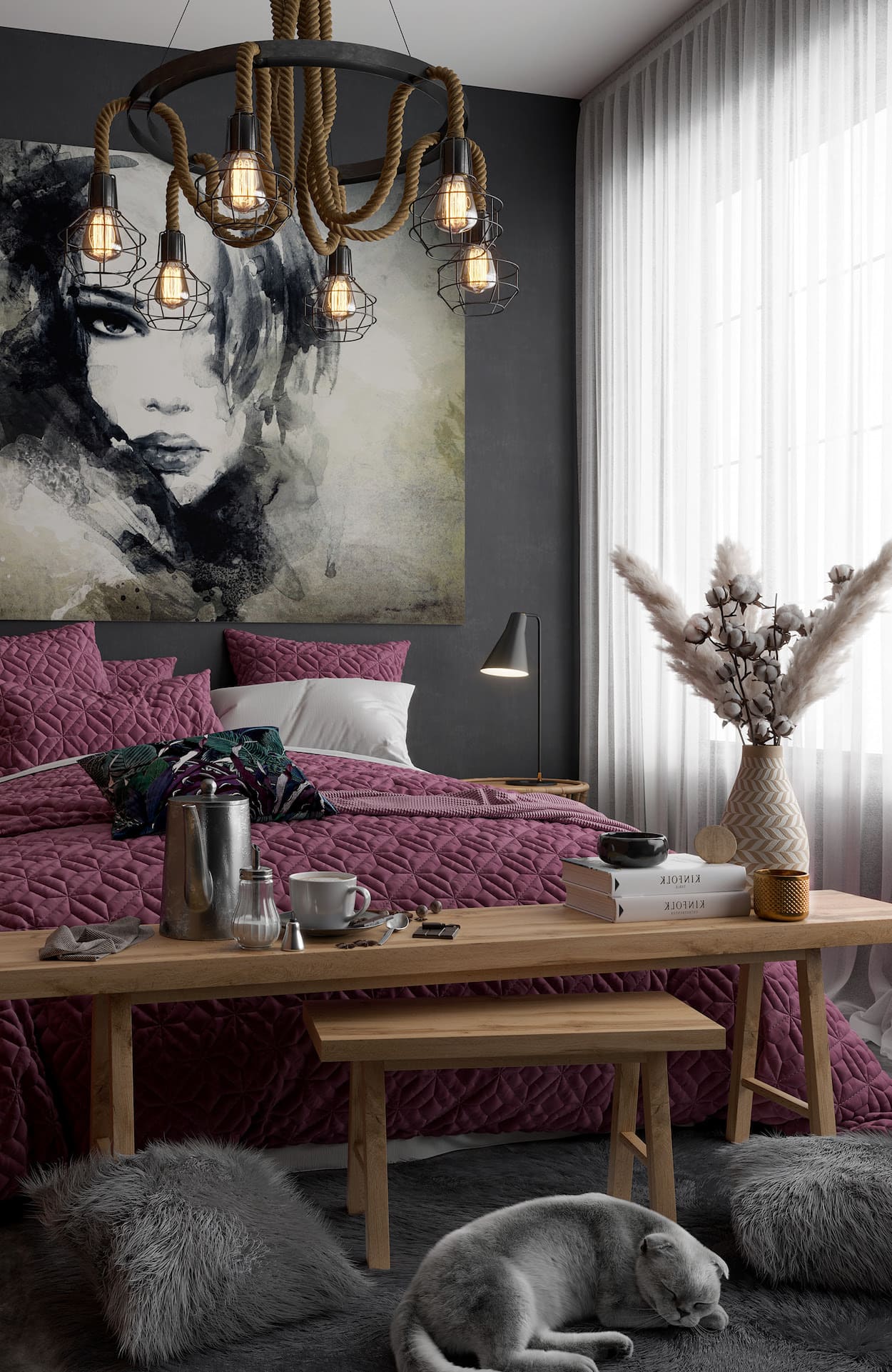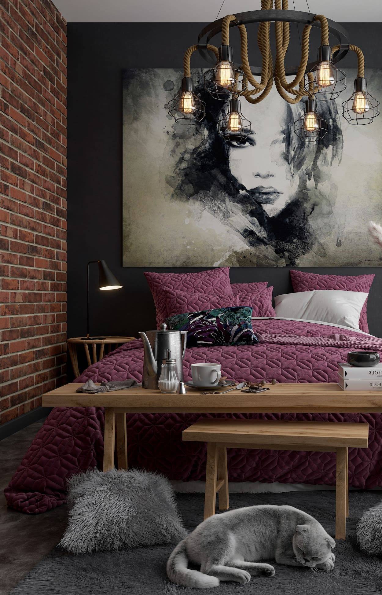 Текстурная графика и роспись на стене сделают интерьер неповторимым, красочным.