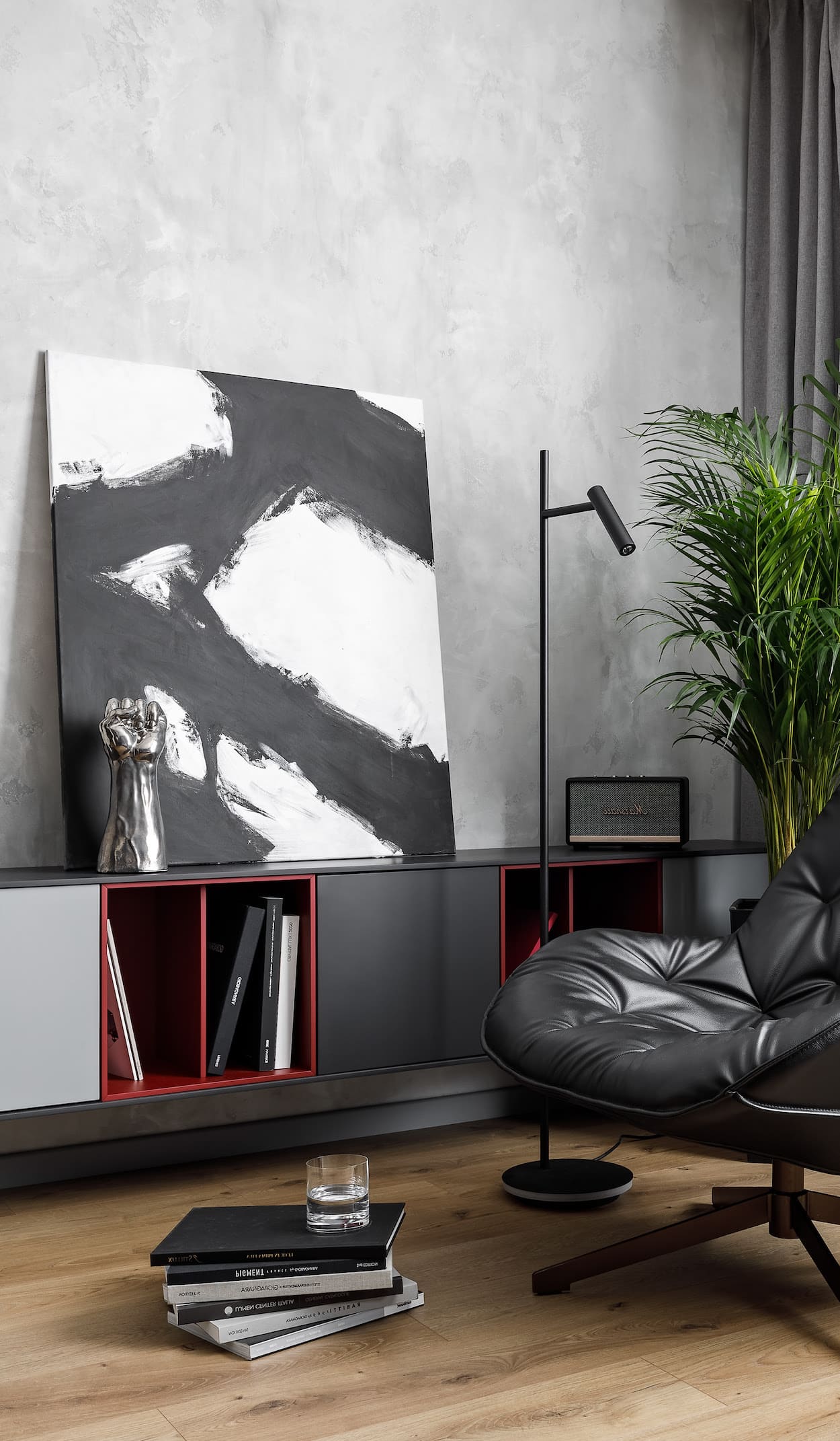 Конструктивизм — стиль дизайна с продуманными чёткими линиями построения, всё подчинено функционалу. Использование декора сведено к минимуму. Абстрактные изображения органично вписываются в эту стилистику, не украшают, а дополняют интерьер.