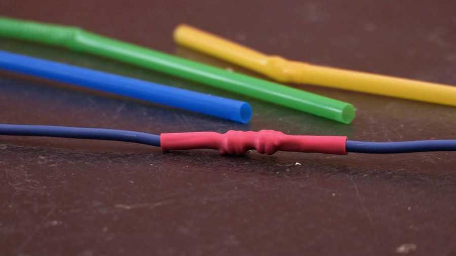 При воздействии высокой температуры, он начинает плавиться, тем создавая сопротивление в зоне открытых участков проводниковой цепи. Диаметр термоусадочной трубки должен быть больше на 2 мм от толщины провода.