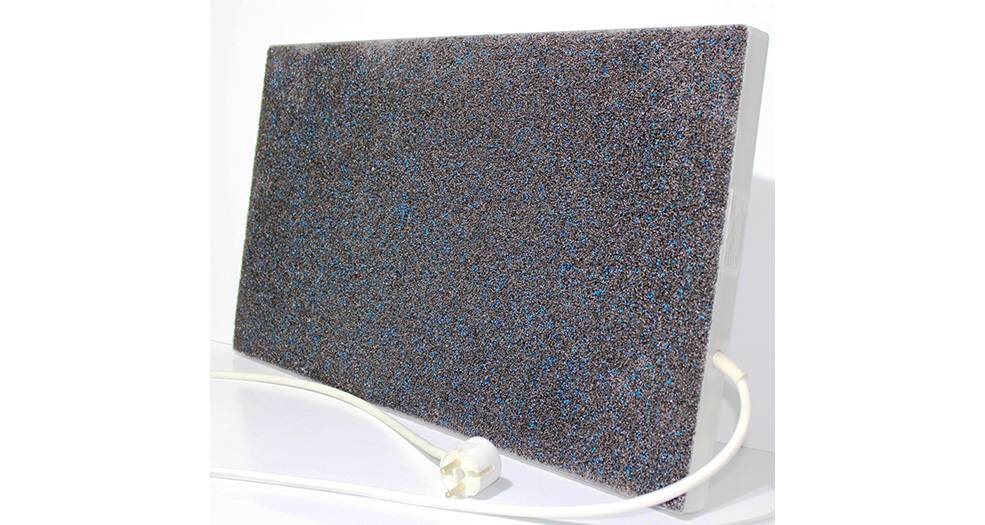 Этот тип оборудования производится из кварцевого песка, размещаемого в монолитной плите толщиной 20-30 мм. Внутри нее запечатывается ТЭН, который нагревает материал, отдающий тепло в помещение.