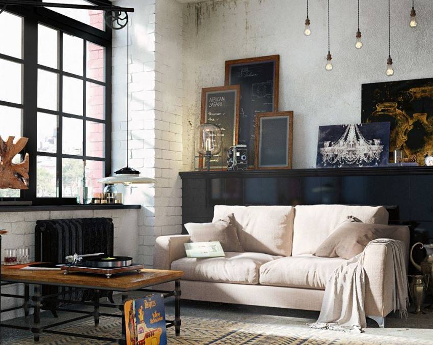 В таком проекте будут учтены все детали, начиная от мебели и заканчивая занавесками на окнах. Например, в комнате стиля лофт оклеивать необходимо лишь одну стену. Остальные стоит оставить светлыми.