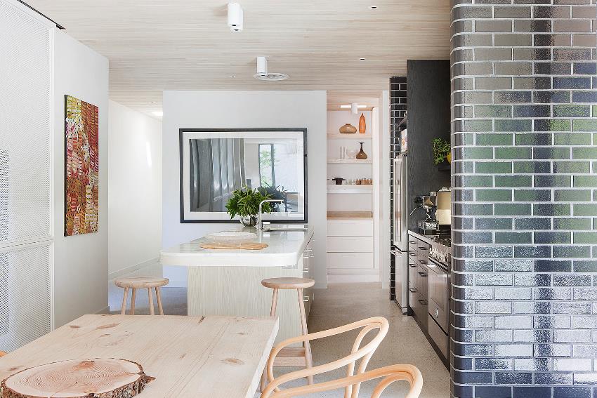Оформлять все существующие стены кирпичными блоками также не стоит, какой бы стиль не был выбран, полностью кирпичные стены сделают кухонную комнату похожей на старый подвал. Лучше использовать кладку как связующий элемент для других отделочных материалов.