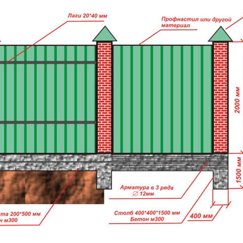 Основание зависит от заборной конструкции, массы заполнения, плотности и несущей способности почвы