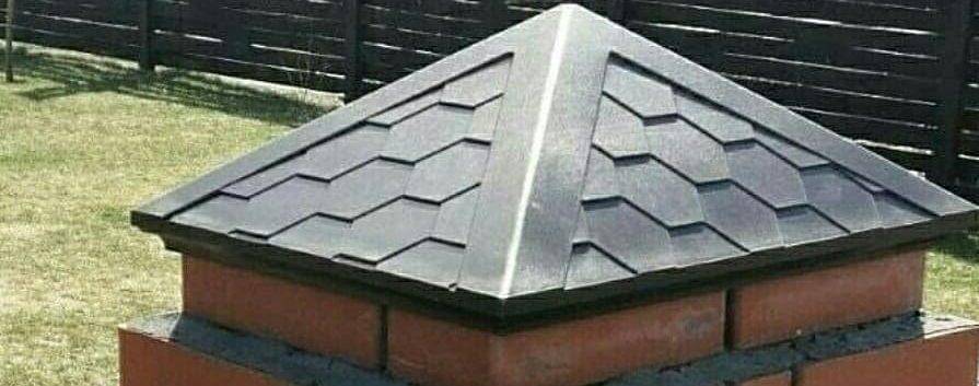 Кирпичи необходимо защищать от осадков. Поэтому верх столба покрывают специальным колпаком. На строительных рынках легко подобрать колпаки из металла, бетона или композита.