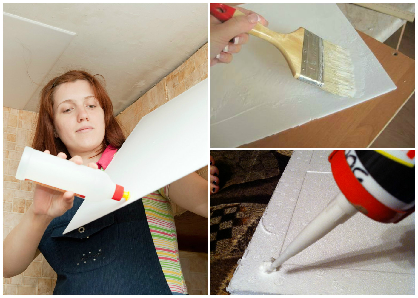 Пенопласт к потолку можно приклеить акриловой шпаклевки