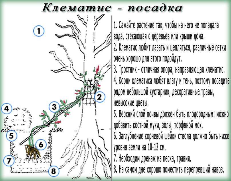 Обычно он приспосабливается к любым условиям, за исключением дачных участков с сильно увлажненным грунтом. На заболоченной почве корни лианы гибнут. Поэтому качественный дренажный слой – обязательное условие при выборе клематиса в качестве элемента ландшафтного дизайна. Предпочтение для посадки на дачном участке отдают солнечным местам, но и полузатененная территория подойдет для выращивания.