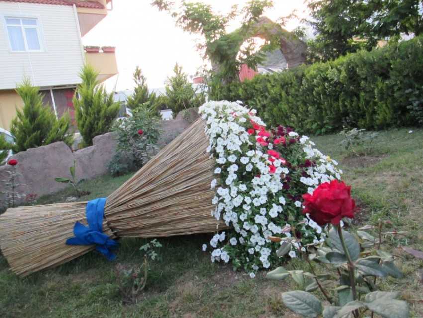 Последние три примера с фото простых клумб и цветников своими руками иллюстрируют потенциальную привлекательность различных вещей. Они пригодны для создания оригинальных композиций. Такой подход открывает действительно неограниченные возможности для успешной реализации собственных идей недорого.