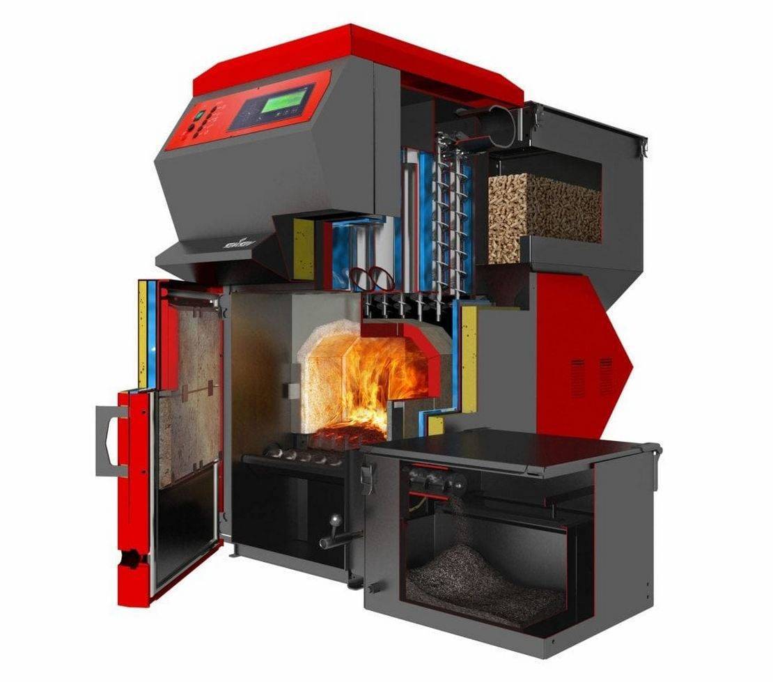 Такие котлы сжигают специально приготовленное топливо — пеллеты в виде гранул, полученных в процессе переработки производственных и сельскохозяйственных отходов: опилок, фрагментов растений и торфа.