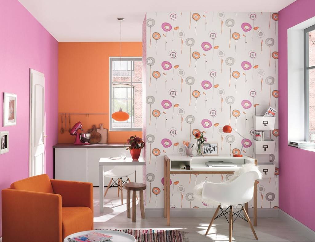 Обои на флизелиновой основе дышат, устойчивы к высоким температурам и возгоранию, легко переносят влажную уборку, не выгорают на солнце, гигиеничны и не впитывают пыль. Кроме того, они удобны тем, что их можно перекрашивать в другой цвет, меняя интерьер, как только он надоест. Они также с успехом могут использоваться на кухне.