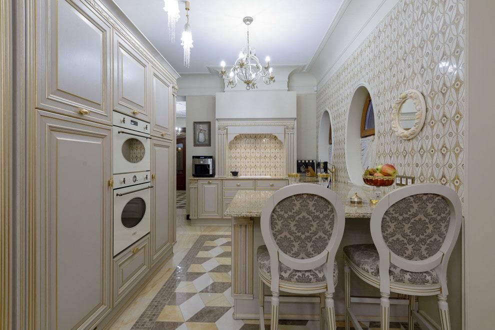 - вензеля и повторяющийся паттерн на светлом фоне подчеркнут богатство классического стиля.